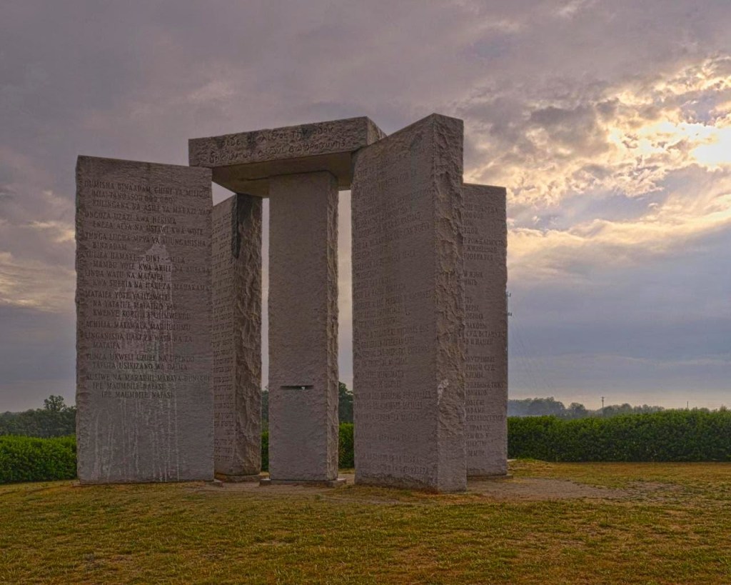 Jejich poselství obzvláště vyniká a zároveň až mrazivě znepokojuje právě dnes, kdy probíhá globalistická vakcinační genocida všech tupých, zbabělých, důvěřivých a hloupých. Jakoby se jejich „prorocká“ slova začala naplňovat. Ačkoli je toto poselství neznámého bohatého sponzora pravdoláskařsky zabaleno do líbivých a „moudrých“ slov, která se zdají být tak lidská a rozumná, že by jim člověk málem uvěřil. Ovšem pod fasádou pravdy a lásky je ukryta smrt sedmi miliard lidí. Přináším obecné povídání o tomto zvláštním monumentu v Georgii, ale názor si každý musí udělat sám. Na mě osobně působí tento monument dosti znepokojivě…Stavba je někdy popisována jako „Americký Stonehenge“. Památník je skoro 20 stop (6,1 metrů) vysoký, pokud počítáme i podzemní podpůrné kameny, jinak je vysoký 18 stop (5,5 metrů) a vyrobený ze žulových desek, které jsou astronomicky uspořádány. Dodatečná kamenná deska, která se nachází na zemi kousek východně od stavby, poskytuje několik poznámek o historii a smyslu Guidestones.