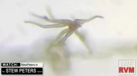 Teprve nedávno se mi podařilo dostat z laboratoře stejnou „vakcínu“, jen samozřejmě jinou šarži. Takže jsme to dali pod mikroskop za stejných podmínek a objevila se stejná struktura s chapadly (čas 5:55). Tentokrát to bylo úplně zakryté sklíčkem, takže se nepohybovala, protože byla při okraji. Nemohla jsem uvěřit, že vidím další. A jinak stejné věci – po čase se objevily stejné barvy a vlákna. Jestli to udělají znovu (pozn. dostane z laboratoře lahvičku), natočíme to na video, protože je tam pohyb.“