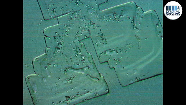Pořád to nic není. Nyní uvidíte další odpařené vzorky. A komponenty jsou lépe vidět. Podívejte se na přímočaré struktury. A co je v centru? CPU? Jaký to šok!