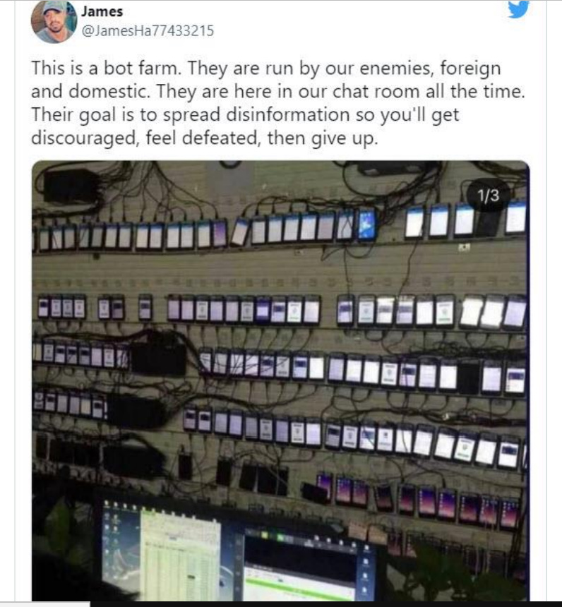 Vybrané propagandistické příběhy pak lze uměle vytvářet a šířit pomocí robotických farem, jako je ta na obrázku níže. 10 Pro někoho může být šokující uvědomit si, že mnoho „lidí“, kteří jsou pro oficiální vyprávění o COVID, vůbec nejsou skuteční lidé.