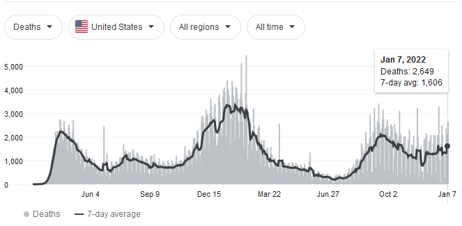 Pokud by totiž tyto jejich údajné „vakcíny“ skutečně fungovaly, jak by mohlo v roce 2021 tedy po zavedení plošného očkování zemřít „s covidem“ 440 000 osob oproti 385 000 v roce 2020 a to bez vakcinace a navíc dokonce při silnější variantě této čínské chřipky? Podle CDC je 62 % populace USA plně očkováno (ať už to znamená cokoli) a čeho tam dosáhli?