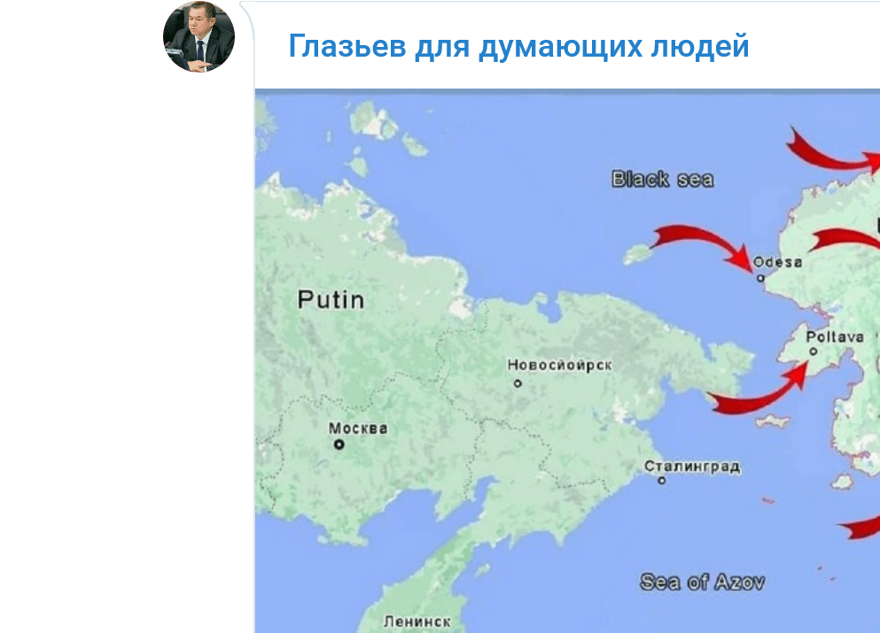 Glazjev považuje tuto sestavenou mapu za „perlu lidového humoru“. Poznamenal, že soudě podle toho, co se děje na Ukrajině, je prezident Volodymyr Zelenskyj zmatený a neví, co má dělat. Chování politika přirovnal k situaci z filmu „Vrtěti psem“. Zelenskij se chová jako „představitel země, která prošla pomyslnou osvobozeneckou operací Spojených států“. A armáda ozbrojených sil Ukrajiny nyní zvažuje, kolik peněz lze asi tak získat, pokud se americké vybavení prodá do míst nějakého horkého konfliktu. „Možná bychom měli zahájit propagandistickou kampaň, abychom vrátili Mexiku území, která mu vzal Washington, a zároveň Francii – Louisianu nelegálně koupenou od Napoleona?“ zeptal se Glazyev.