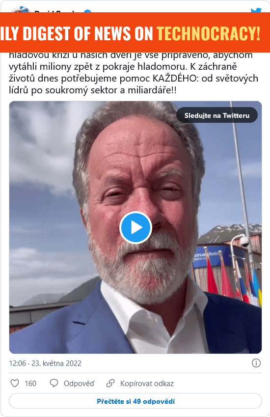 David Beasley, výkonný ředitel Světového potravinového programu OSN, hovořil v Davosu a měl pro nás radostné zprávy. Podívejte se na jeho krátký komentář na obrázku jeho twitterového účtu níže.