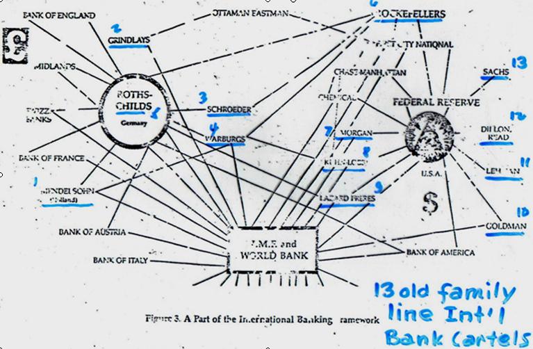 První tři z nich jsou vzájemně propojeny jako akcionáři a mohou jednat jako jeden celek, což jim dává celosvětově kontrolu nad odhadem 25 bilionů dolarů, což jim dává pákový efekt přesahující 100 bilionů dolarů (v porovnání s celosvětovým HDP ve výši přibližně 90 bilionů dolarů), a mají tak virtuální kontrolu nad každou zemí na světě. Viz článek s videem Kdo vlastní svět?