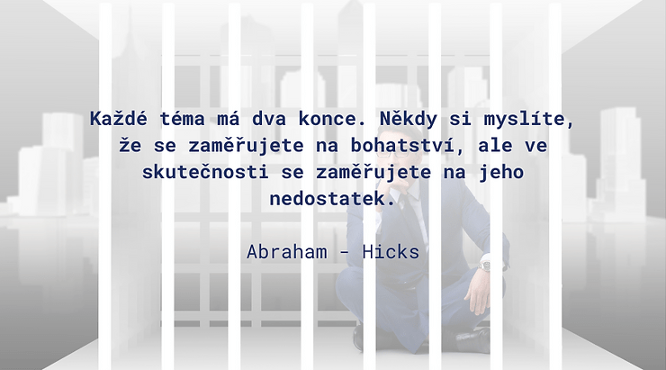 A právě v závěru Abrahamovy odpovědi shledávám tu past nepřipraveného člověka. Pokud nejedná vědomě, může si tvořit iluzorní představu o tom, že se soustředí na bohatství a hojnost, zatímco ve skrytu jeho jednání je úzkost z nedostatku a potřeba svou situaci měnit násilně. Může tak dojít k velkým komplikacím.