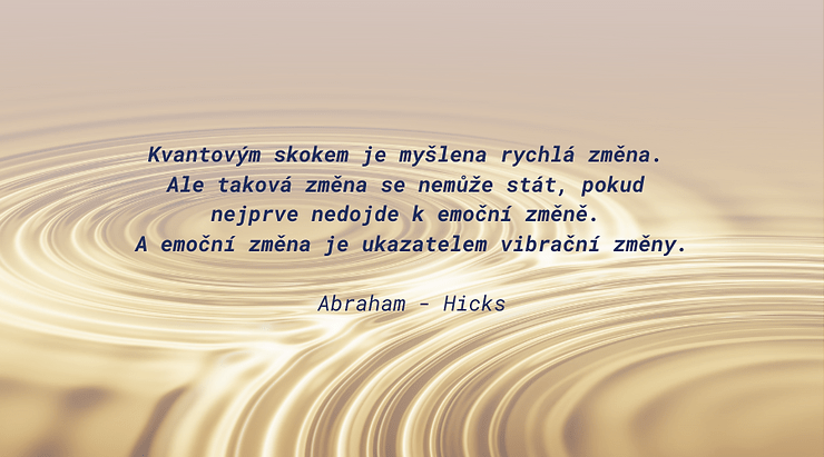 Obecná definice kvantového skoku říká: „Definition of quantum jump = an abrupt transition (as of an electron, an atom, or a molecule) from one discrete energy state to another.“ Tedy že kvantový skok je náhlý přechod (elektronu, atomu nebo molekuly) z jedné oddělené energetické pozice do jiné. Odborná wikipedie doplňuje: „When the system absorbs energy, there is a transition to a higher energy level (excitation), when the system loses energy, there is a transition to a lower energy level.“ – Pakliže systém absorbuje energii, dojde k přechodu na vyšší energetickou hladinu (excitace), pakliže systém ztratí energii, dojde k přechodu na nižší energetickou úroveň (hladinu). Jako první toto popsal Niels Henrik David Bohr. Ráda bych nás přenesla do rozhovoru s Abraham – Hicks (v rozhovoru zde), kde je fungování kvantového skoku trefně pojato takto: