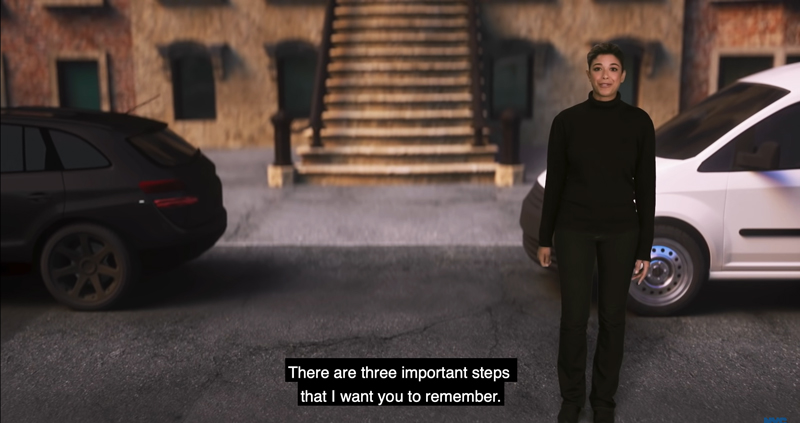 Pomocí špatně použitého efektu zelené obrazovky je vypravěčka umístěna na toto pozadí tím snad asi nejnepřirozenějším možným způsobem.
