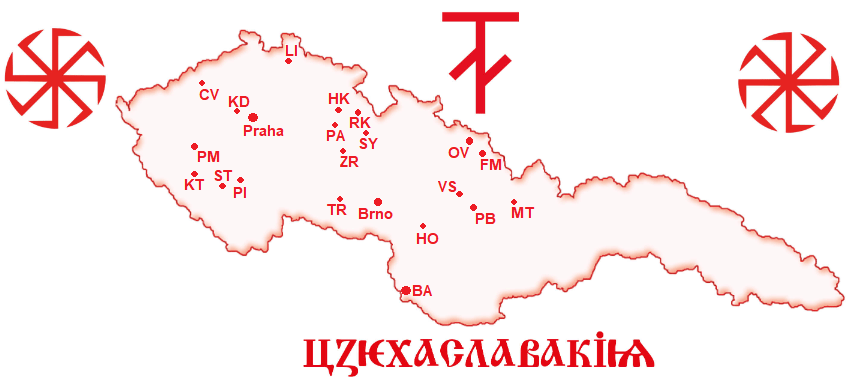 Seděli jsme všichni tři v jejich „studiu“, které asi dobře znají všichni, kdo sledují pořady Dieržavy Czechaslavakia na jejich kanále na YouTube. Malá místnost v nejvyšším patře vilky se zahradou v Hradci Králové, jejíž příjemná majitelka paní Mária, velké dobro jí, obdařená podobným světoponímáním jaké máme všichni tři v ní poskytla Mojmírovi a Marušce a jejich projektu Direžavy Czechaslavakia životní zázemí a střechu nad hlavou. Menší místnosti sloužící jako kancelář, zasedačka a studio v jednom, vévodila nástěnka s textem referenda, a červeno žlutý Perunův obereg – symbol Dieržavy a rovněž obrovská sukovice od Bílého vlka, což celé doplňovalo ještě několik slamáků s karunou, a velký stůl s červeným kostkovaným ubrusem, o němž Mojmír oprávněně prohlásil, že se u něj vytvářely dějiny. Na druhé nástěnce bylo červeným fixem napsáno několik myšlenek a visela tam také přehledná velká tabulka Staroslavianskej boukovice, kterou jsem pak od Marušky obdržela jako krásný dárek s sebou a získala motivaci k dalšímu vlastnímu bádání.
