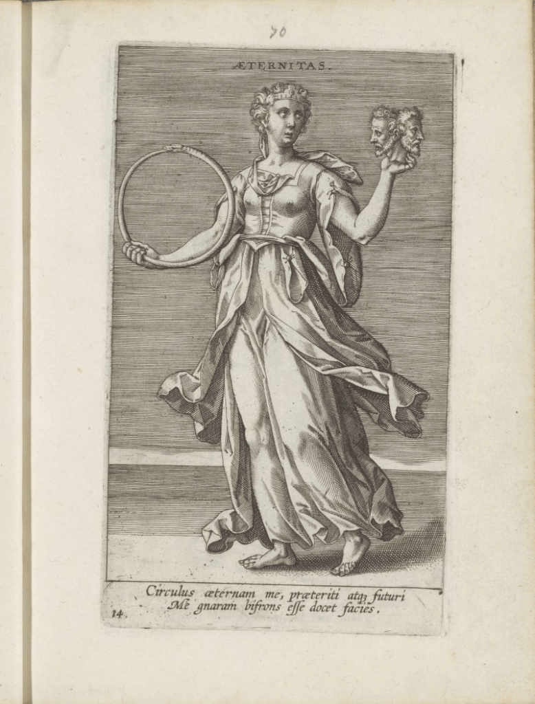 Aeternitas (Věčnost), od Prosopographia, sive virtutum, animi, corporis, bonorum externorum, vitiorum, et affectuum variorum delineatio, c. 1585–1590.