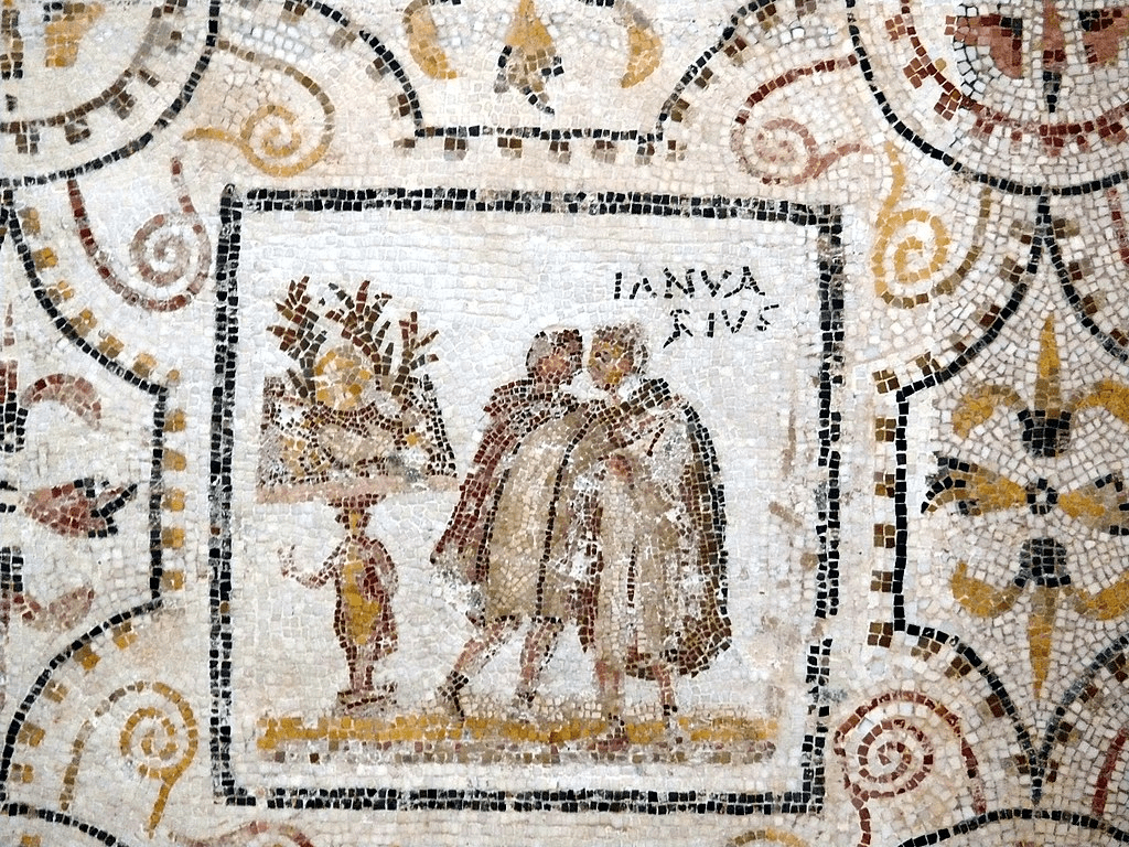 Leden, fragment římské mozaiky měsíců v roce, 3. století n. l.