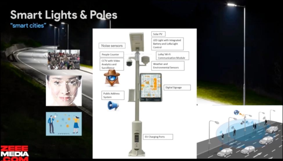 Elektrotechnik dále říká, že chytré póly budou mít “šumové senzory” které se zdánlivě budou používat pro kontrolu hluku, ale ve skutečnosti se budou používat ke sledování konverzací lidí. Chytré póly budou mít také “kontrolery lidí,” sledovací kamery, dále megafony pro správu příkazů veřejnosti a nabíjecí stanice pro letecké policejní drony.