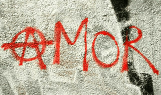 Na fotografii vlajky je ten původní symbol, „A uvnitř kruhu. Čelíme pozitivnímu kódu. V graffiti na zdi se objevuje manipulace se sibylinou, která tento symbol mění na velmi negativní kód, který je součástí 666 kódů, které jsou původem tohoto tak slavného čísla. Tady to „A“ opouští kruh, opouští ochranu Jednotky, opouští Světlo. A přesně to je velmi dobře maskované slovem „láska